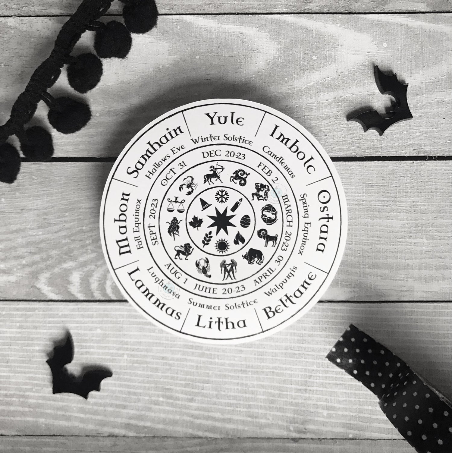 Wheel of the Year, Die Cut Vinyl, Waterproof, Stickers, Zodiac, Sabbot, Yule, Samhain, Seasons