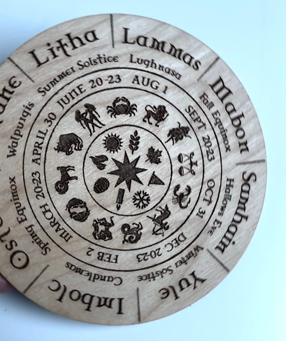 Wheel of the Year Wood Magnet, Sabbat, Pagan, Zodiac