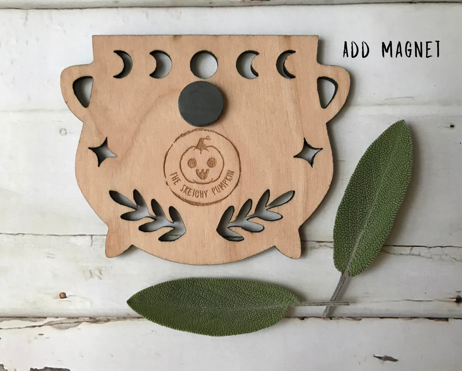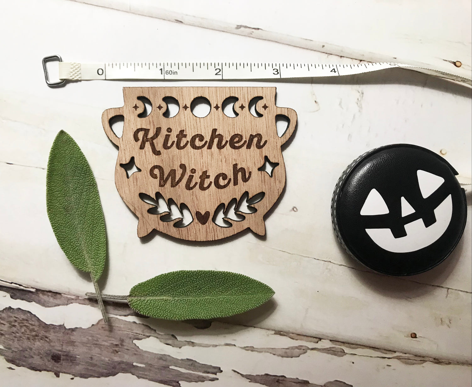 This wooden ornament or magnet is designed to honor the little kitchen witch in all of us.